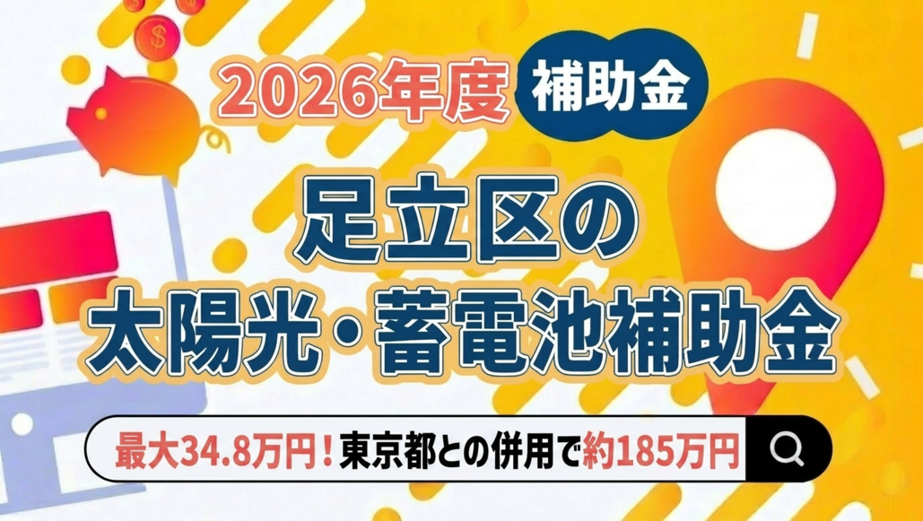 【2026年(令和8年)最新】足立区の太陽光・蓄電池補助金はいくら?最大34.8万円+都併用で約185万円