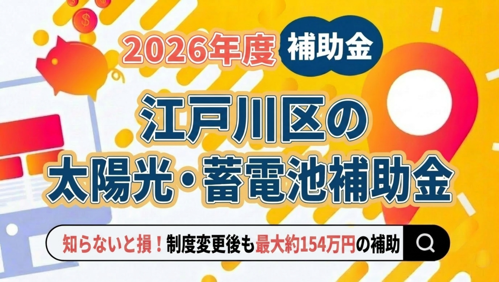 江戸川区の太陽光・蓄電池の単独補助は令和7年度で終了しましたが、代替メニュー(最大4万円)+東京都補助金(約150万円)で最大約154万円の補助が見込めます。江戸川区の受付は4月6日から開始済みです。
